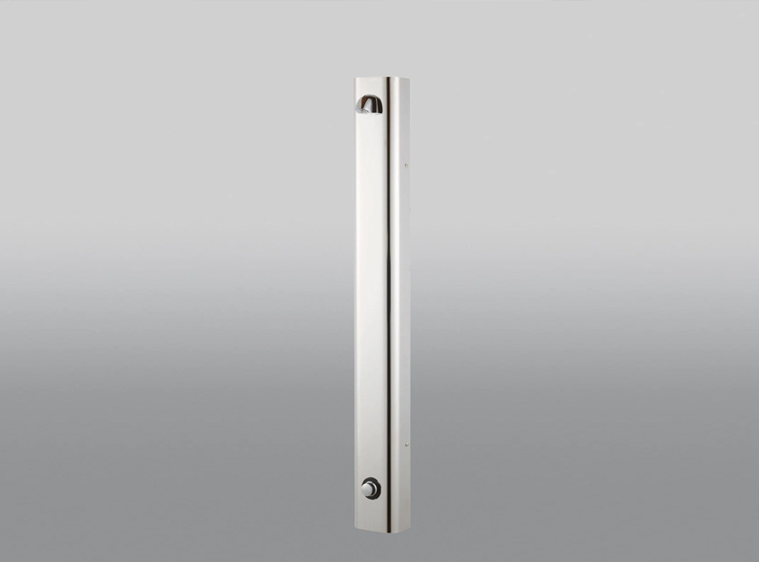 Surface mounted shower-panel in AISI 304 stainless steel, complete with self-closing tap, 15-25 sec and non-hanging shower-head